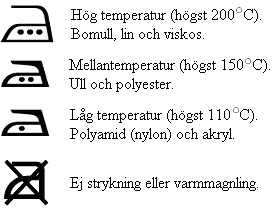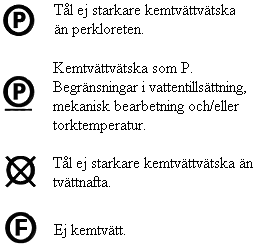 Kan tvättas i halvfylld tvättmaskin med angiven temperatur. Strecket under baljan manar till extra försiktighet. Följ doseringsanvisningen på tvättmedelsförpackningen. Överdosering ger inte bättre tvättresultat, och tvättmedlet blir svårare att skölja bort. Oblekta linnevaror bör inte tvättas med tvättmedel som innehåller optiskt vitmedel, då de bleks.